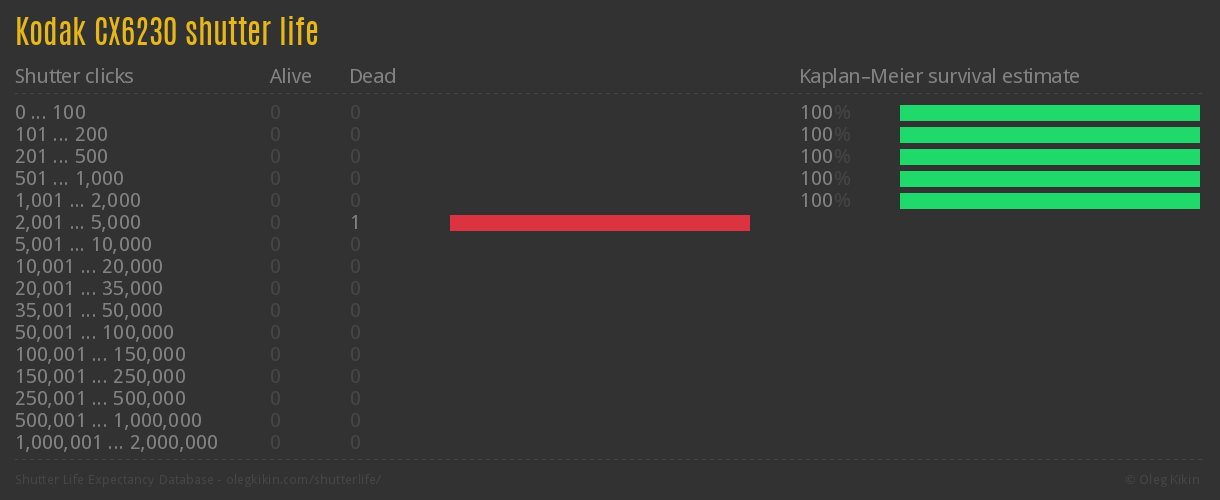 Direct link to this page: Kodak CX6230Average number of actuations after which shutter is still alive: no data