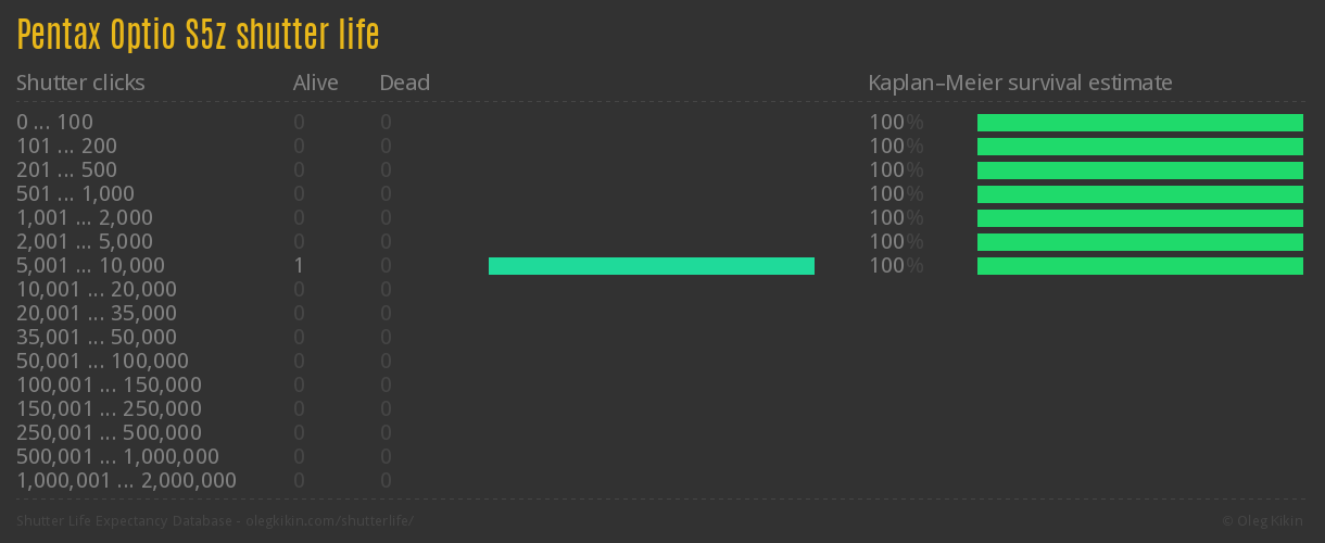 Direct link to this page: Pentax Optio S5zAverage number of actuations after which shutter is still alive: 5,600.0