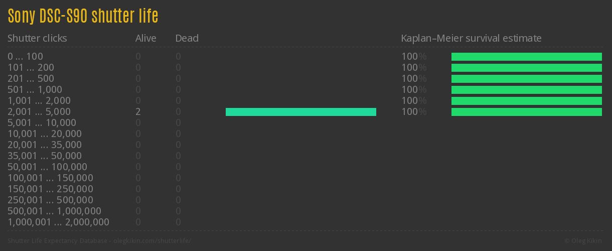 Direct link to this page: Sony DSC-S90Average number of actuations after which shutter is still alive: 2,900.0